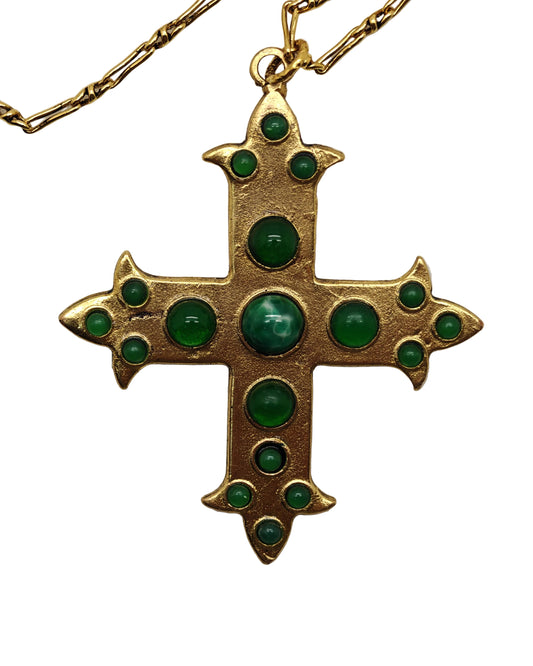 SAUTOIR CROIX VERTE en doré