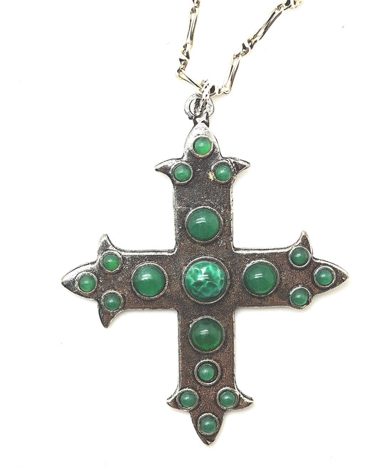 SAUTOIR CROIX VERTE en argenté