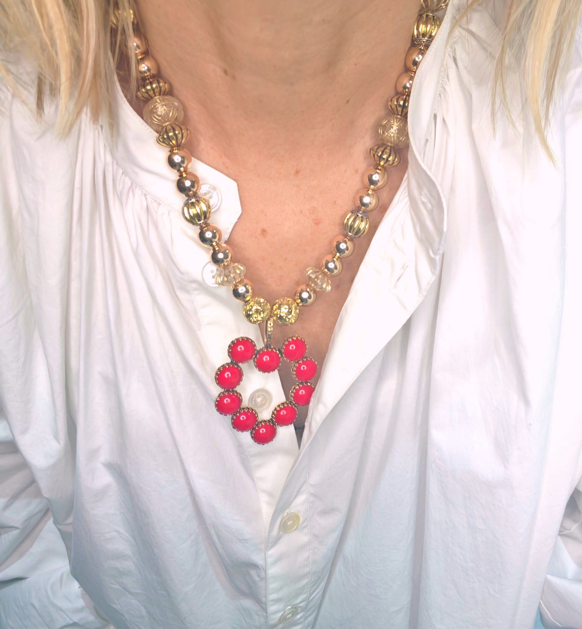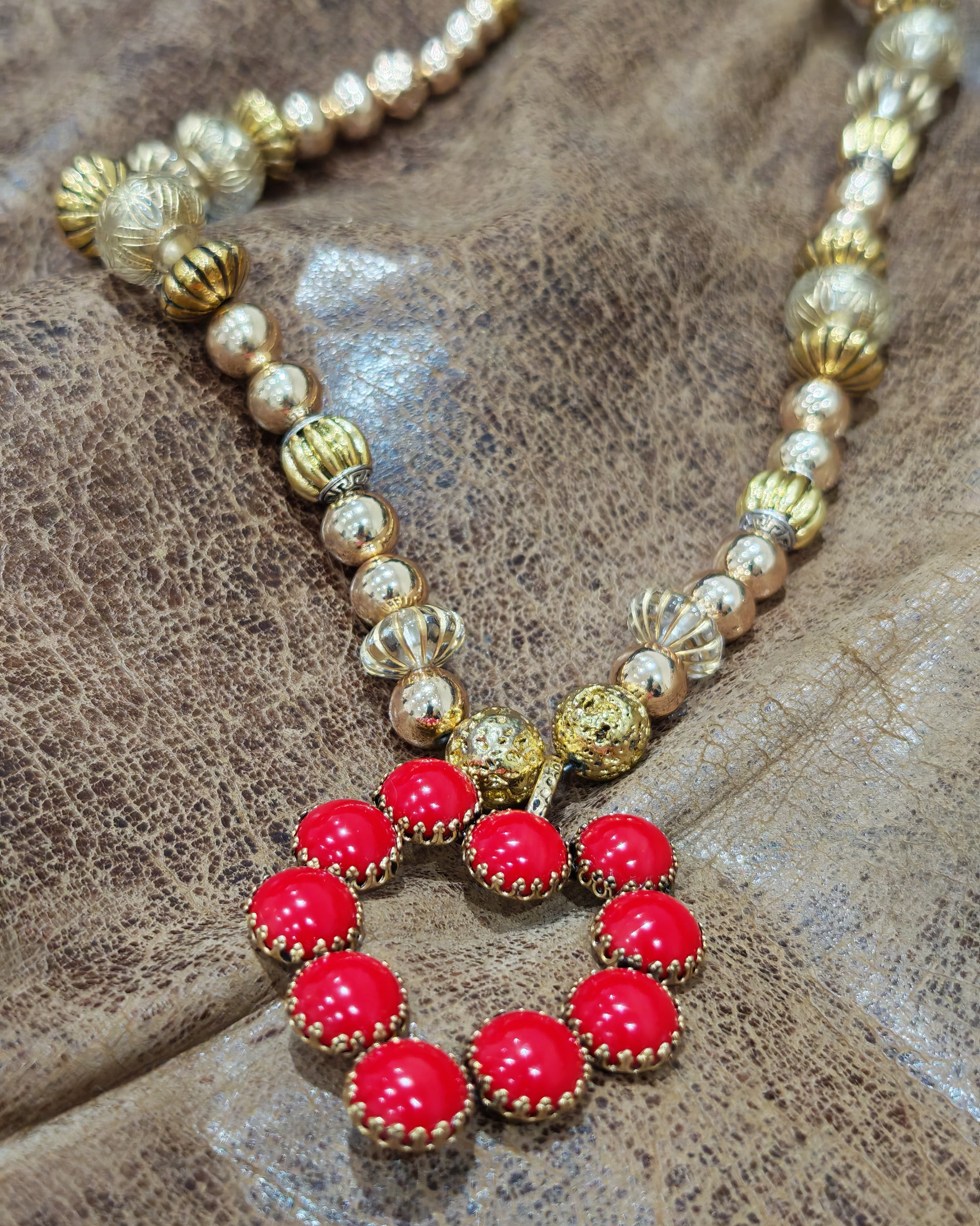 Collier pièce unique avec son cœur rouge en cabochon de verre soufflé à la main.